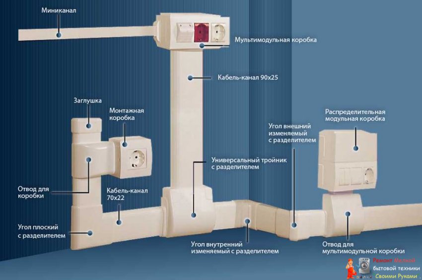 Уменьшенная версия парапетных кабельных каналов, в которые можно проложить некоторое количество проводников — телевизионный, телефонный, для интернета.