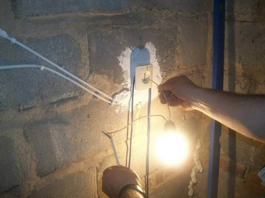 Некоторые электрики предпочитают искать фазу контрольной лампочкой. Для этого они берут обычную лампу накаливания, патрон и два многожильных провода. Провода соединяются с патроном, а лампочка соответственно вкручивается в него. Затем один конец провода прикасается к металлической трубе отопления, а второй вставляется в контакт для поиска фазы. Где лампочка загорелась, там и фаза.
