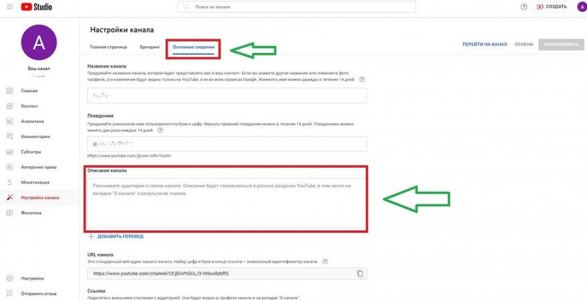 - Все в том же разделе «Настройка канала» щелкаем по «Основные сведения».