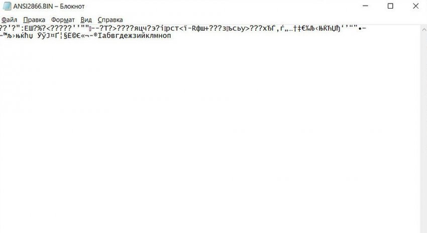 компьютера окна «Блокнота» с непонятными «крякозябрами». Все из-за того, что Блокнот — это текстовый редактор, и он честно пытается выполнить свою работу, интерпретируя двоичные данные, как текст и выдавая совершенно бессмысленную информацию.