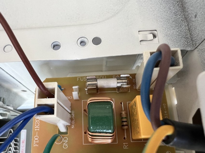 Проверяем предохранитель. Он принимает весь удар на себя, защищая дорогостоящую электронику от неполадок в сети. Причиной неработоспособности СВЧ как раз может являться перегоревший предохранитель, который вышел из строя из-за скачка напряжения. Обычно их устанавливается два или даже три — первый защищает технику от короткого замыкания в розетке, а другие два защищают магнетрон и блок управления.