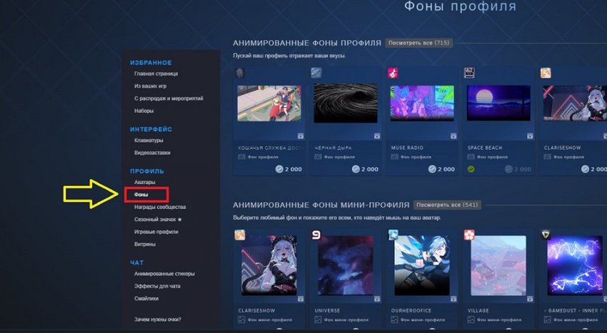 этой ссылке можно найти подробный гайд. Сами иллюстрации можно подобрать здесь. Полистайте остальные витрины и посмотрите, какая подходит вам больше всего. Если у вас есть редкие предметы в CS 2 или Dota 2, то похвастайтесь ими, открыв витрину предметов.