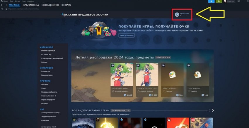 здесь. Вкратце: вам нужны очки, чтобы покупать крутые модификации для профиля. Получить их можно, покупая игры в Steam. Примерно 800 рублей нужно потратить, чтобы заработать 1000 очков. Проверить свой баланс можно так.