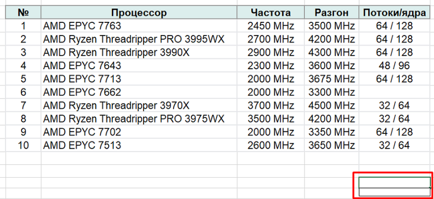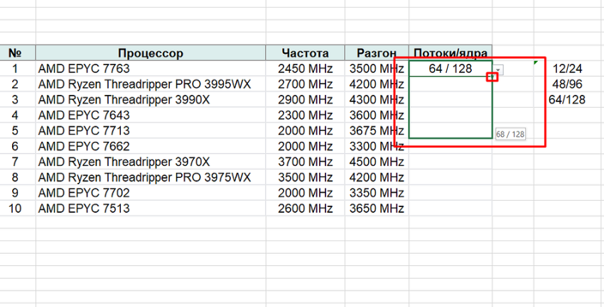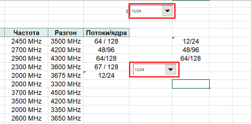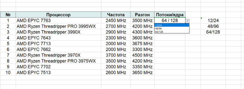 1. Выписать в столбик данные, которые будут использоваться в списке. Это может быть, например, количество ядер и потоков для процессора.