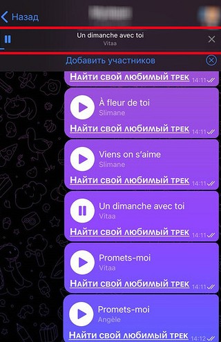 - На Android и iOS это делается одинаково. Заходим в «Телегу» и открываем чат с плейлистом.