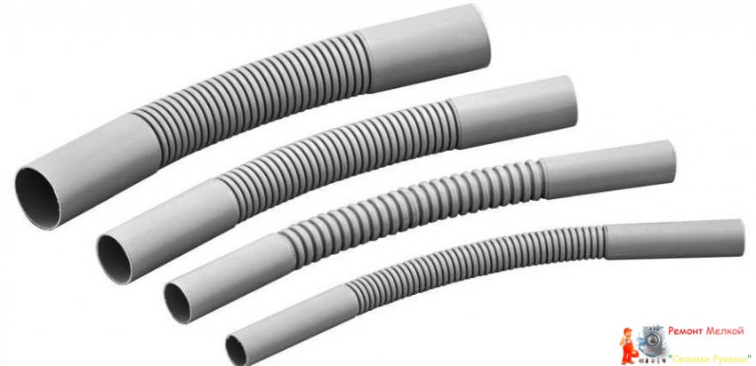 - ПВХ (поливинилхлорид). По цвету — серые трубы, самозатухающие. Гофра ПВХ не водостойкая, применяться может только в сухих помещениях.
