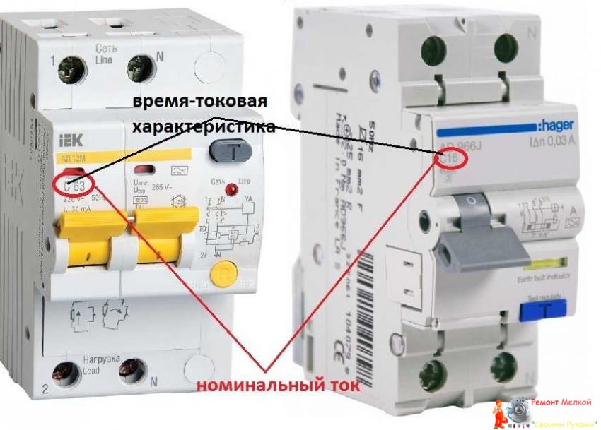 Номинал дифавтомата и его время-токовая характеристика
