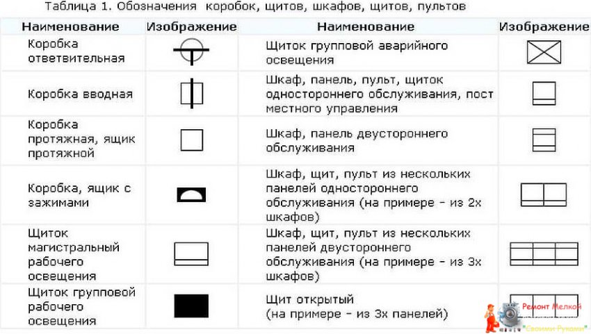 Обозначение электрических элементов на схемах: шкафы, щитки, пульты