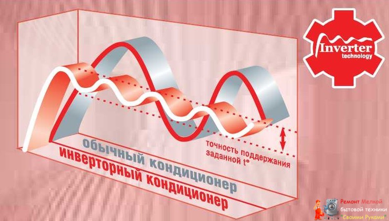 Инверторными называются кондиционеры, которые могут плавно менять параметры работы: мощность охлаждения и скорость работы вентиляторов. В отличие от обычной технологии, когда оборудование имеет два режима работы: или работает на 100% мощности или отключено. Это дает три неоспоримых преимущества: