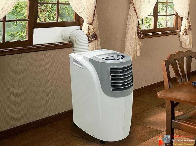 В моноблочных кондиционерах все части и устройства упакованы в один корпус. Этот тип климатической техники появился первым и когда-то был широко распространен, но сегодня их не так много — слишком они шумные.