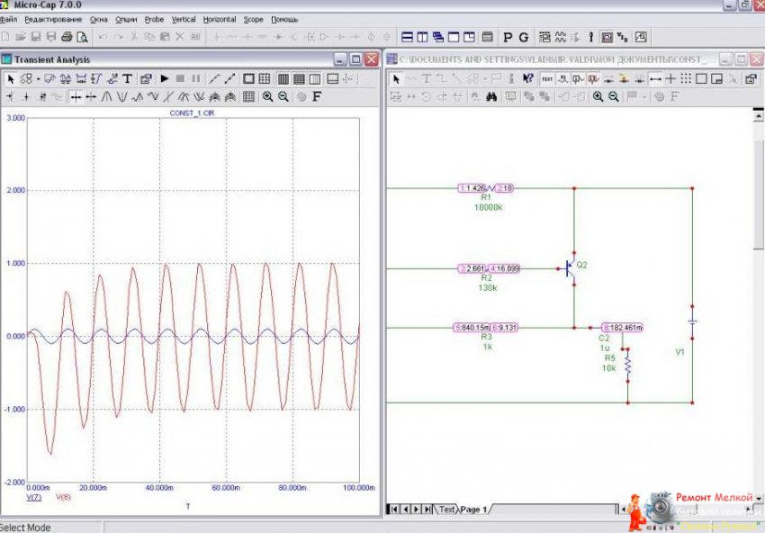 В программе Micro-Cap есть встроенные библиотеки, которые можно пополнять при помощи специальной функции. При рисовании электрической схемы продукт в автоматическом режиме разрабатывает уравнения цепи, также проводит расчет в зависимости от проставленных номиналов. При изменении номинала, изменение выходных параметров происходит тут же.