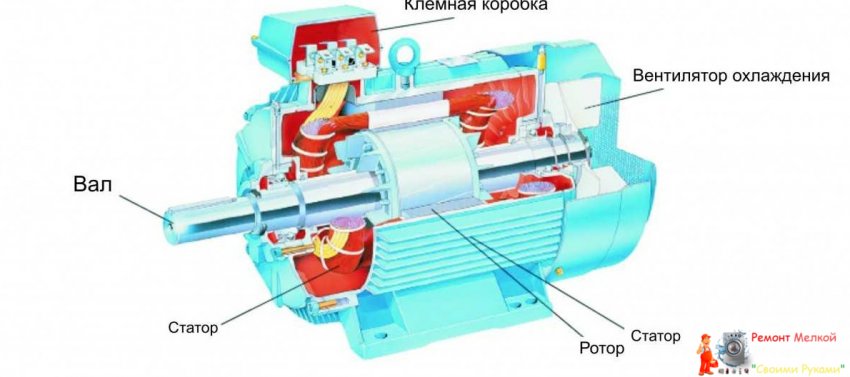 Асинхронный двигатель имеет статор и ротор, может быть одно и трёхфазным. В данной статье рассматриваем подключение однофазных двигателей, потому речь пойдет только о них.