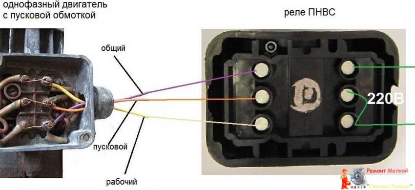 Подключение однофазного двигателя с пусковой обмоткой через кнопку ПНВС