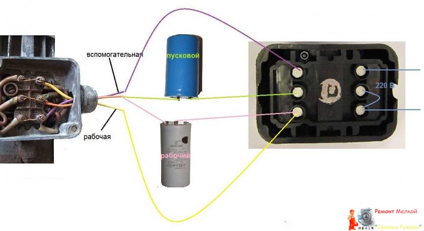 Подключение однофазного двигателя: схема с двумя конденсаторами — рабочим и пусковым