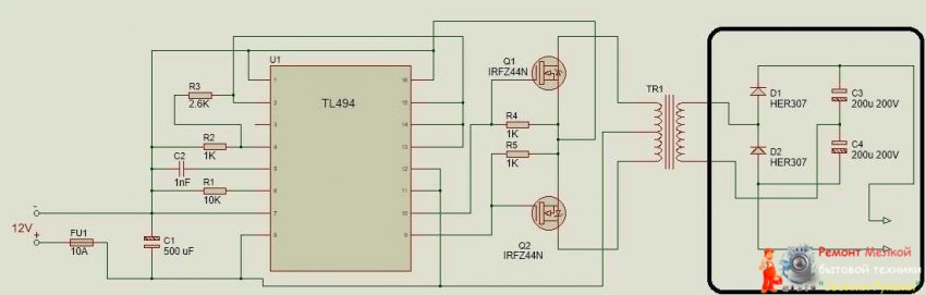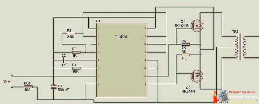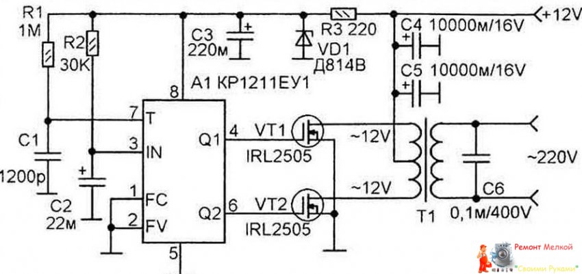 Преобразователь напряжения 12 220 В: схема преобразователя на основе ШИМ-контролллера