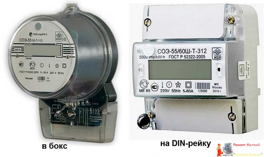 Двухтарифные счетчики энергии СОЭ-55 в двух корпусах — на DIN-рейку и в бокс