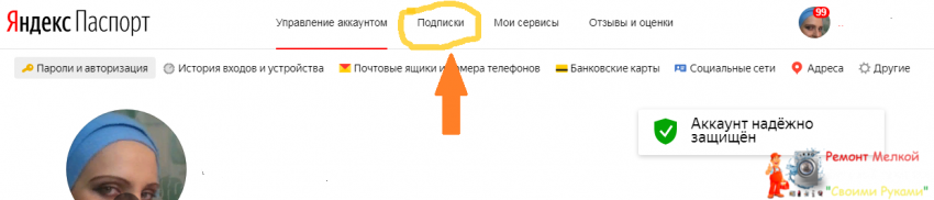 - Выбрать раздел «Яндекс Паспорт», чтобы отключить подписку.