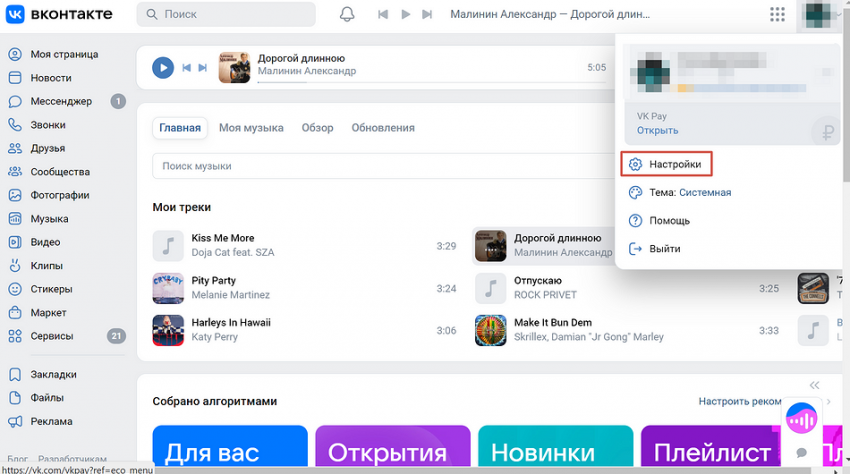 Отключить в ВК платную подписку на музыку можно с помощью тех же способов, что описаны выше: открыть любой браузер и зайти на сайт ВКонтакте или ВК Музыки или использовать мини-приложение VK Combo.