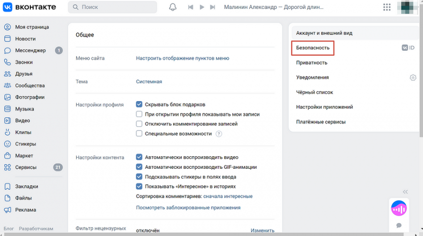 - Откройте VK и кликните на свой аватар в правом верхнем углу.