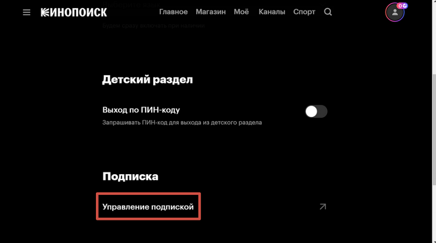 Как отменить подписку на Кинопоиск на компьютере
