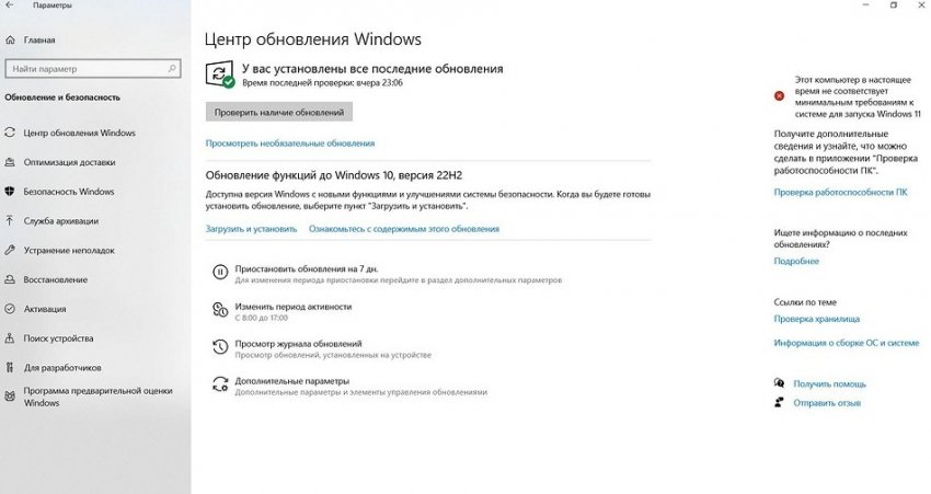 - Перейдите в раздел «Обновление и безопасность» и найдите там пункт «Центр обновления Windows».