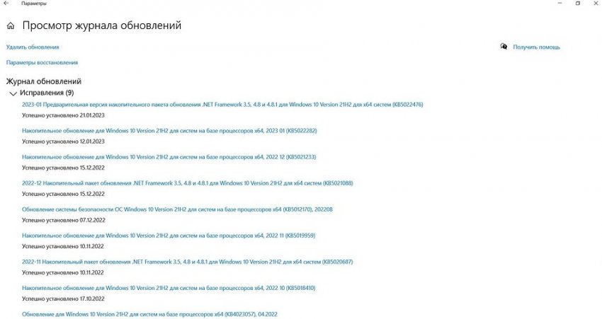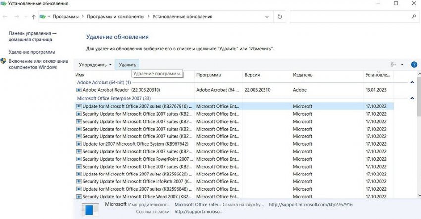 - Подтвердите удаление выбранного обновления и дождитесь завершения операции.