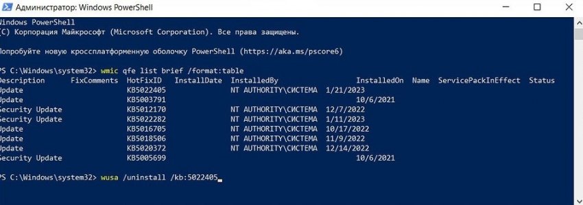 Этот способ удаления обновления Microsoft Windows подойдет тем, кто привык работать с командной строкой, а в нашем случае оболочкой Windows PowerShell.