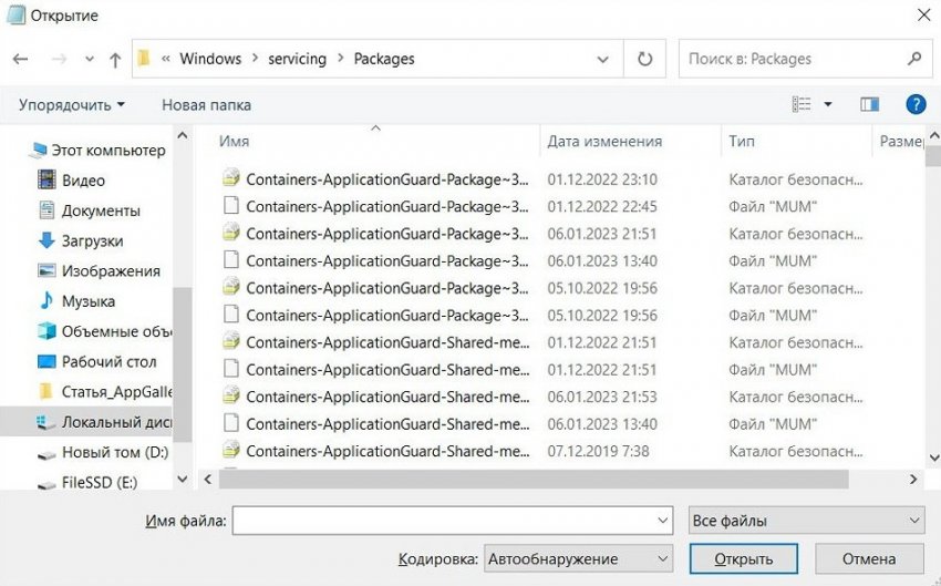 - Перейдите в папку WindowsservicingPackages на системном накопителе.