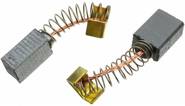 Большая часть электроинструмента все еще работает на щеточных двигателях. Это моторы, в которых напряжение на якорь подается через угольные щетки — подпружиненные контакты из графита. Со временем они стираются и требуют замены, так что их износ вполне можно назвать еще одной возможной неисправностью болгарки.