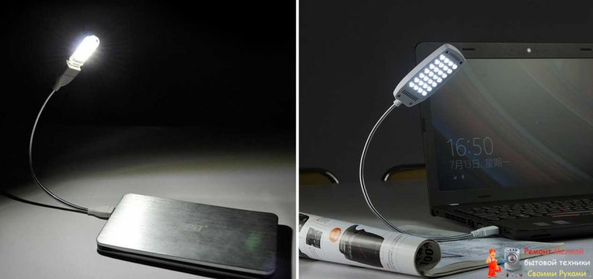 Подключить к ноутбуку можно небольшую ЛЭД лампу