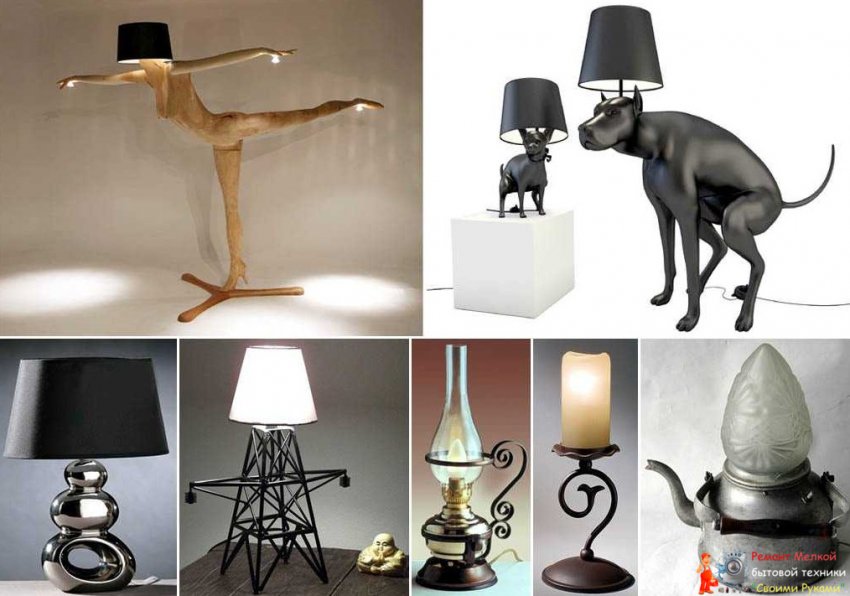 Кроме подставки, следует определиться с тем, какая вам больше подходит ножка светильника — держатель плафона. Речь идет не только о материалах или формах, а о конструкции тоже. Настольные лампы могут быть: