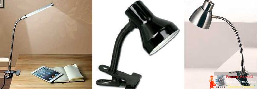 Как видите, не так много вариантов. Но это самое начало, есть еще много других факторов, которые надо будет учесть. Если говорить о «народных» предпочтениях в выборе крепления для настольной лампы, то наиболее популярны два способа — на подставке и струбцина. Они более удобны. Светильники «прищепка» обычно недорогие, но они быстро теряют «хватку», со временем хуже держатся. Если вам нужна именно недорогая лампа, примерно на год, полтора — это ваш вариант.