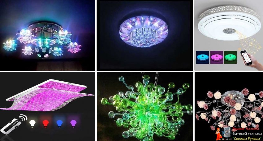 Некоторые светодиодные люстры для дома с пультом управления могут изменять еще и цвет
