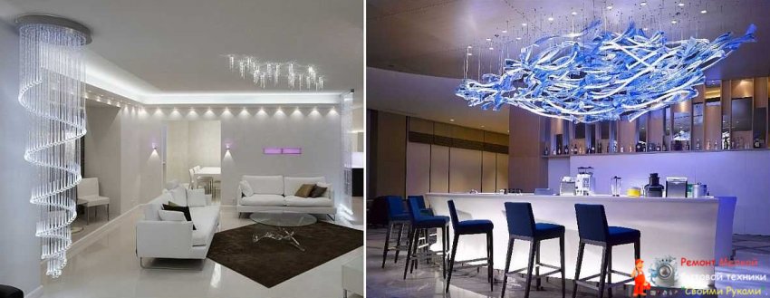 Есть светодиодные люстры на подвесах, есть — потолочные
