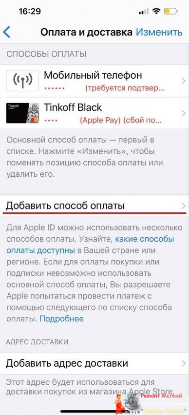 - Если вы раньше не оплачивали ничего со счета телефона, то выберите пункт «Добавить способ оплаты».