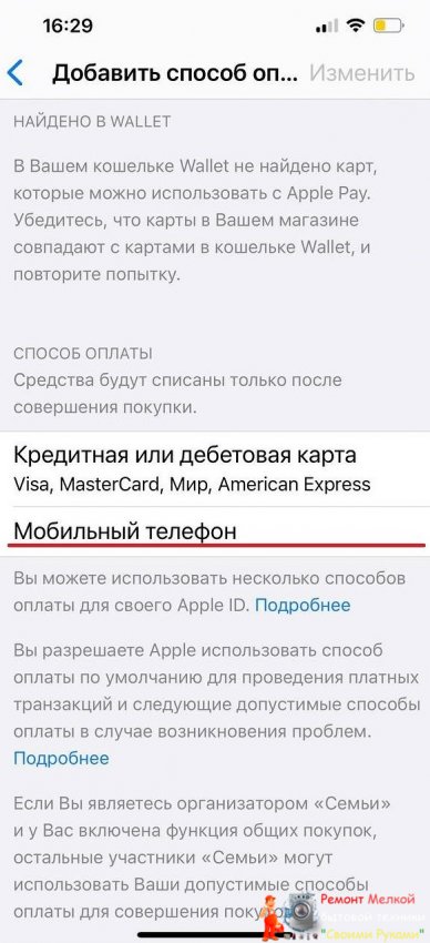 - Добавьте новый метод оплаты — «Мобильный телефон».