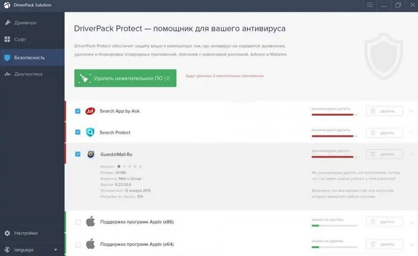 При этом программа позволяет проводить как полностью автоматическую, так и выборочную установку драйверов. Ну а в качестве приятного бонуса у нее есть функция обнаружения и удаления вредоносного софта, плагинов с навязчивой рекламой и других нежелательных программ.