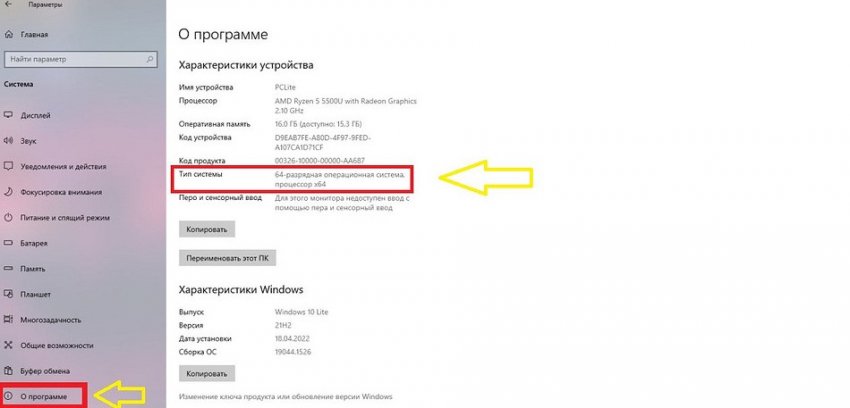 сюда, если у вас 64-разрядная система, или сюда, если установлена 32-битная Windows. Узнать разрядность ПО можно так: Параметры → Система → О программе. В строке "Тип системы" вы увидите нужное вам значение: помните, что х86 это и есть 32 бита.