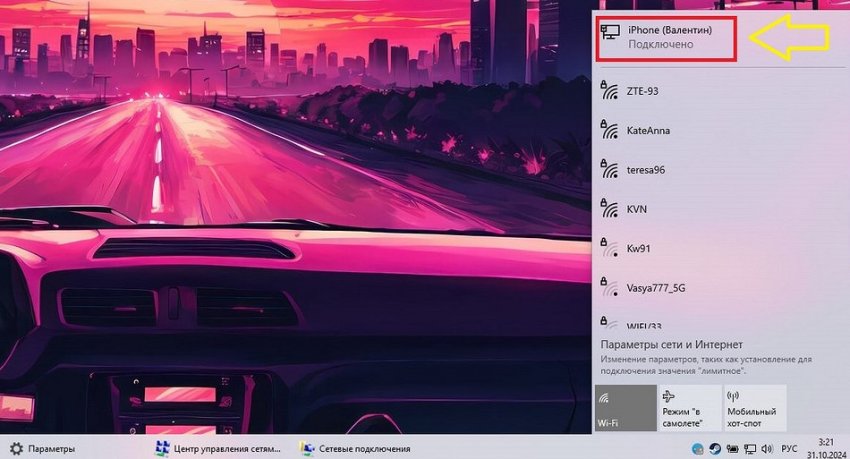 - Если режим модема был активен, то компьютер автоматически подключится к интернету через Айфон.