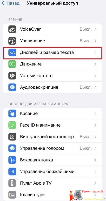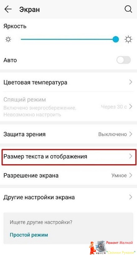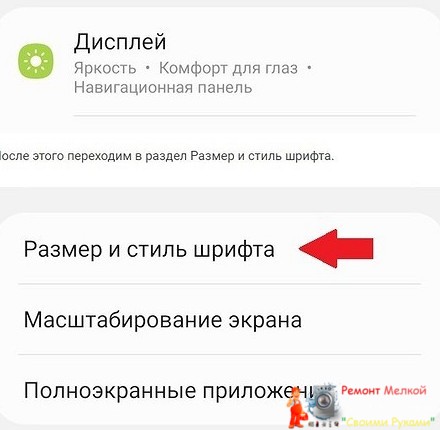 Выбираем строчку «Дисплей и размер текста».