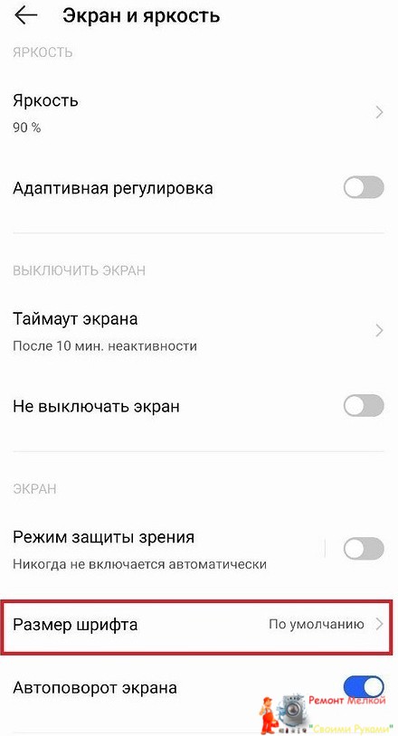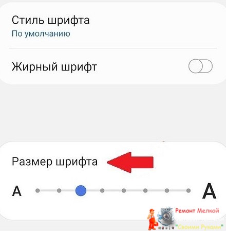Тапаем по строчке «Размер шрифта»