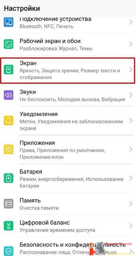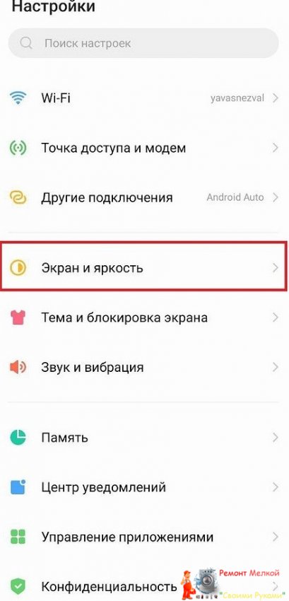 Заходим в «Настройки» и выбираем строчку «Экран».