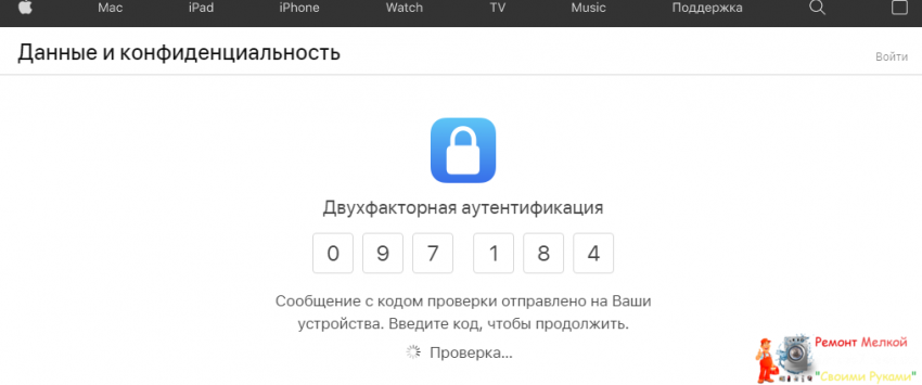 - Введите код двухфакторной авторизации, если используете устройство стороннего производителя. Код появится на экране вашего гаджета Apple.