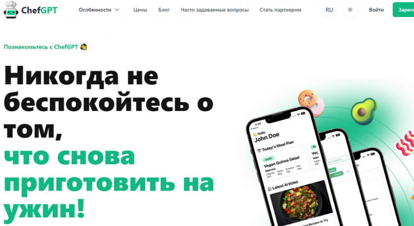 Сайт бесплатный, но без русского интерфейса, есть английский и ещё несколько языков. Там вы можете уточнить, что примерно вы ходите приготовить, например, суп, курицу, панкейки и т.д. А также есть ли особые предпочтения вроде вегетарианства, надо ли какие ингредиенты исключить, для какого приёма пищи это блюдо и многое другое.