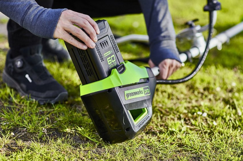 Если вы хотите взять триммер на все случаи жизни, стоит рассмотреть, например, Greenworks GD60BCB (на 60 В). В ней установлен мощный бесщеточный двигатель, который работает тише обычного (со щетками) и служит дольше. Триммер комплектуется удобным ремнем, распределяющим нагрузку, а также велосипедной рукояткой. Можно работать с лесками сечением до 2,4 мм, также и 25-сантиметровым диском, которые также прилагается к триммеру.