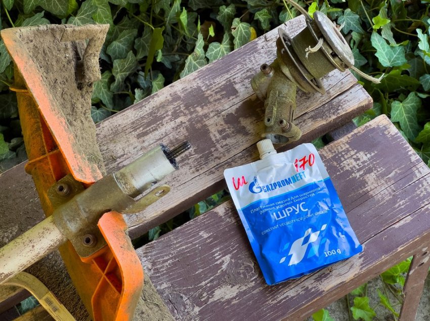 Для смазывания триммерных редукторов и валов следует использовать пластичную смазку, которая выдерживает работу при высоких температурах. Самой доступной и недорогой в этом плане является «литол» — она хорошо держится на поверхности деталей, обладает устойчивостью к нагреву, а также отталкивает воду и имеет антиокислительные присадки, которые продлевают срок службы. Ее можно использовать и в редукторе, и в штанге.