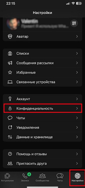 - Открываем WhatsApp и лезем в «Настройки». Нас интересует строка «Конфиденциальность» на iPhone и «Приватность» — на Android.