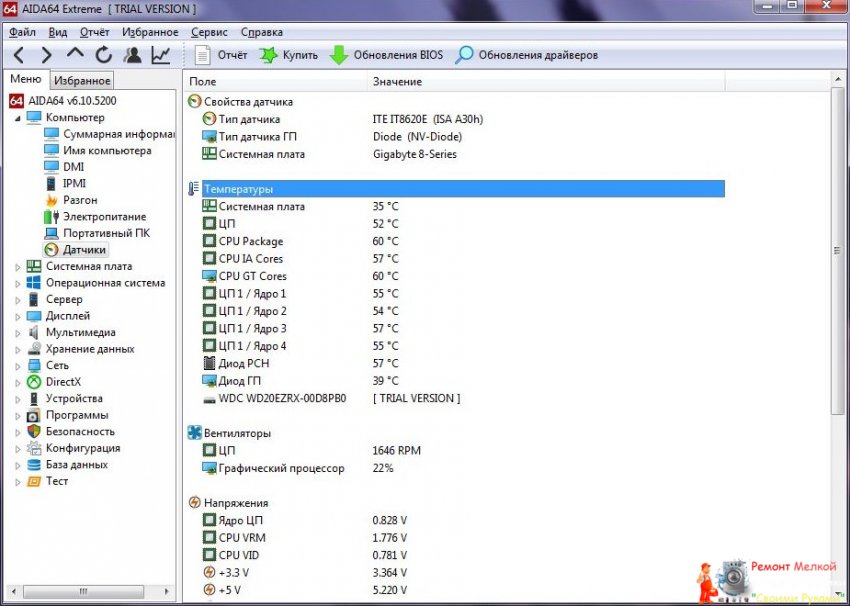 Как посмотреть температуру процессора через программу Аида