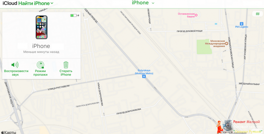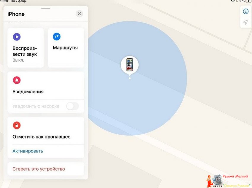 - Найдите на карте ваше устройство и откройте информацию о нем, нажав на [i].