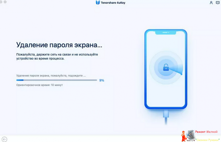 - Нажмите «Начать разблокировку» и дождитесь окончания процесса — код-пароль будет удален.